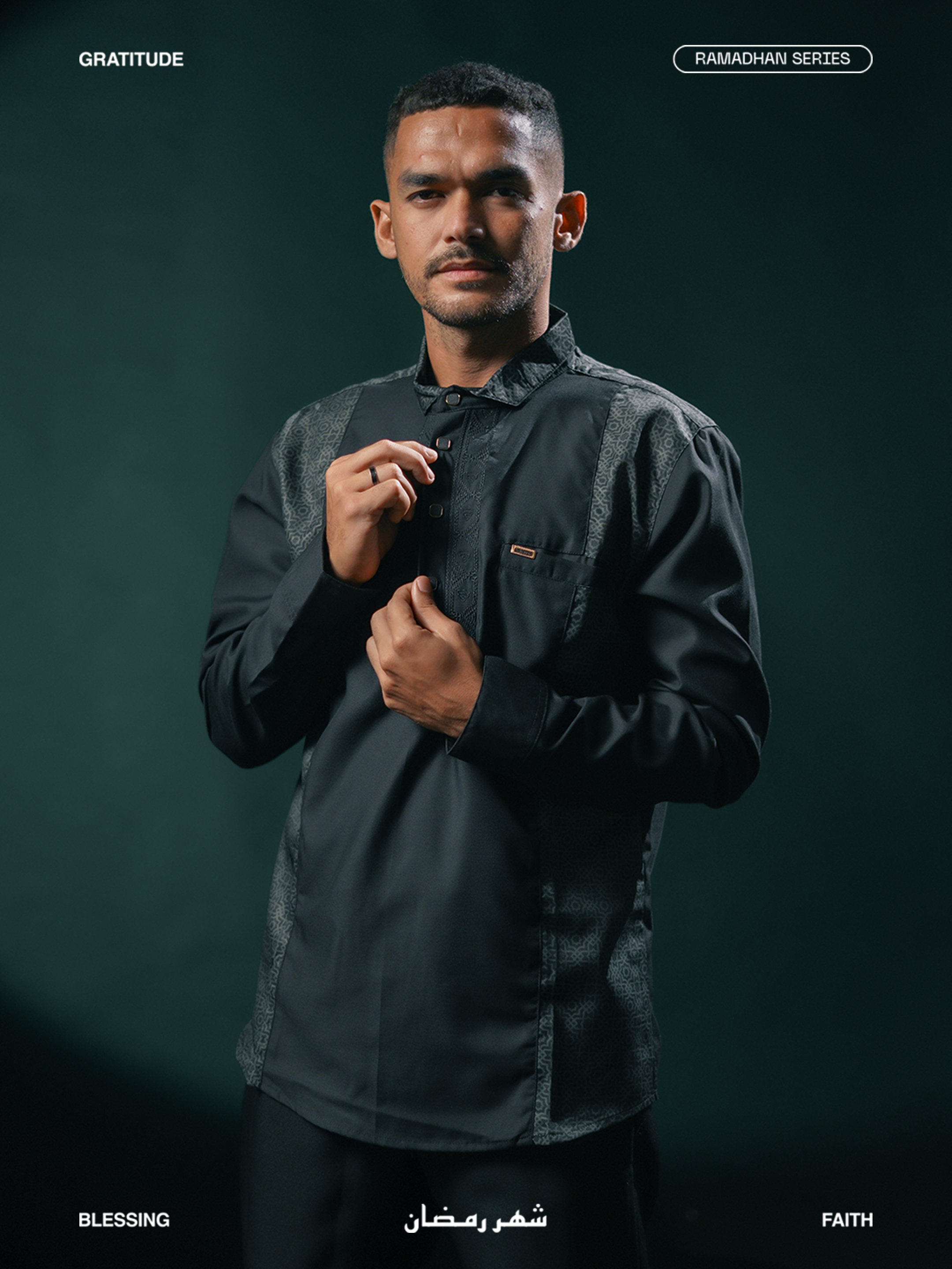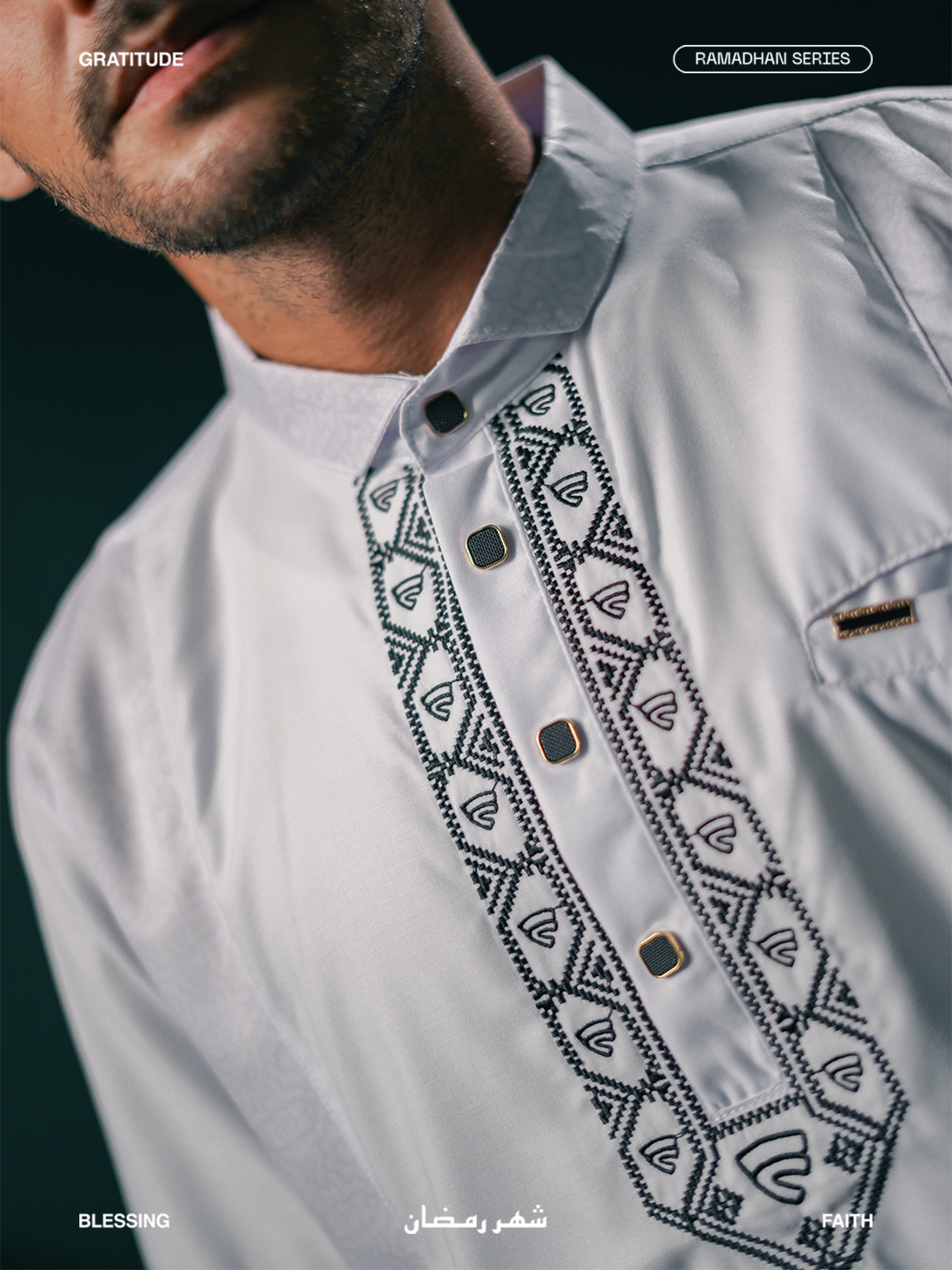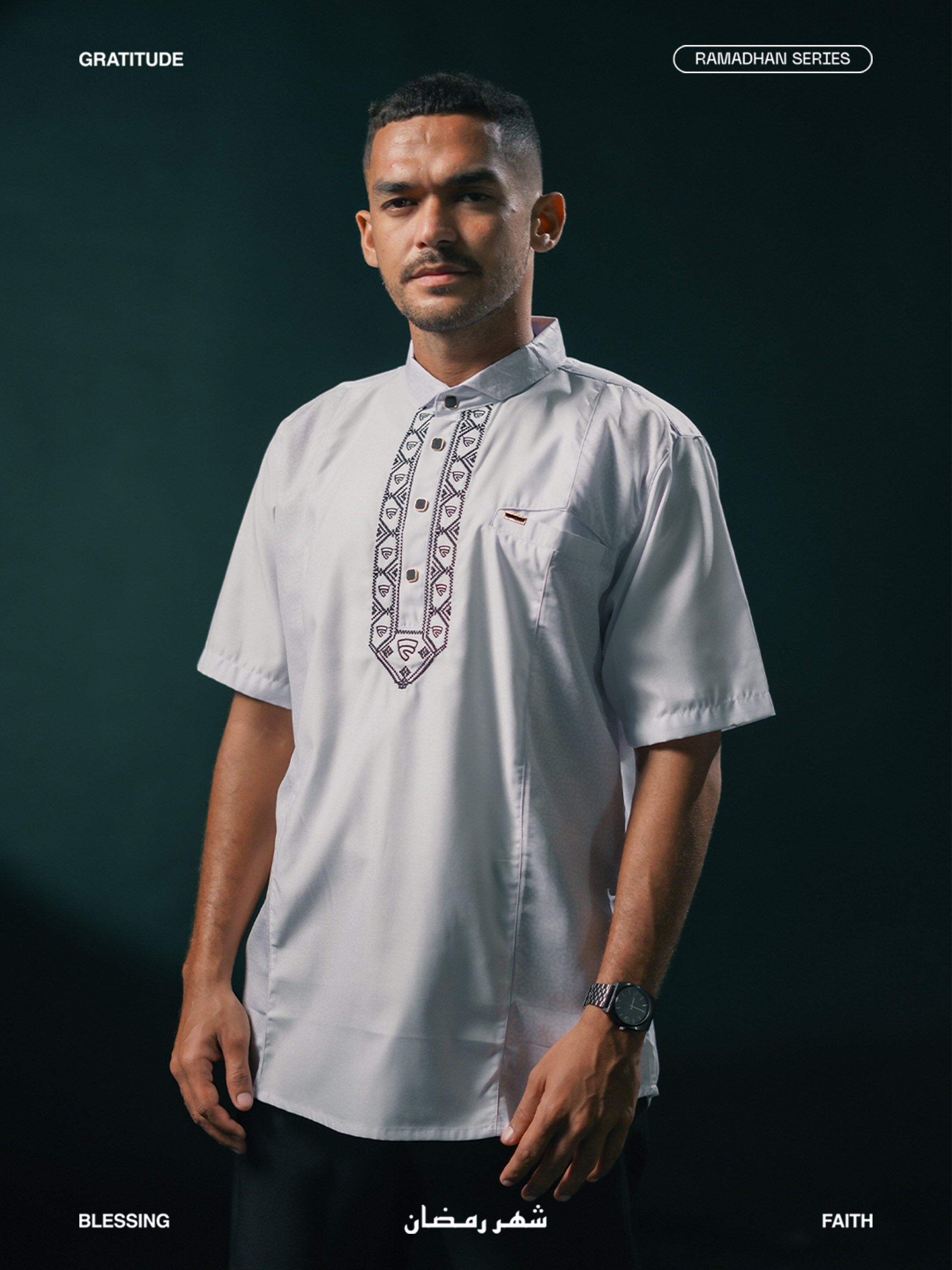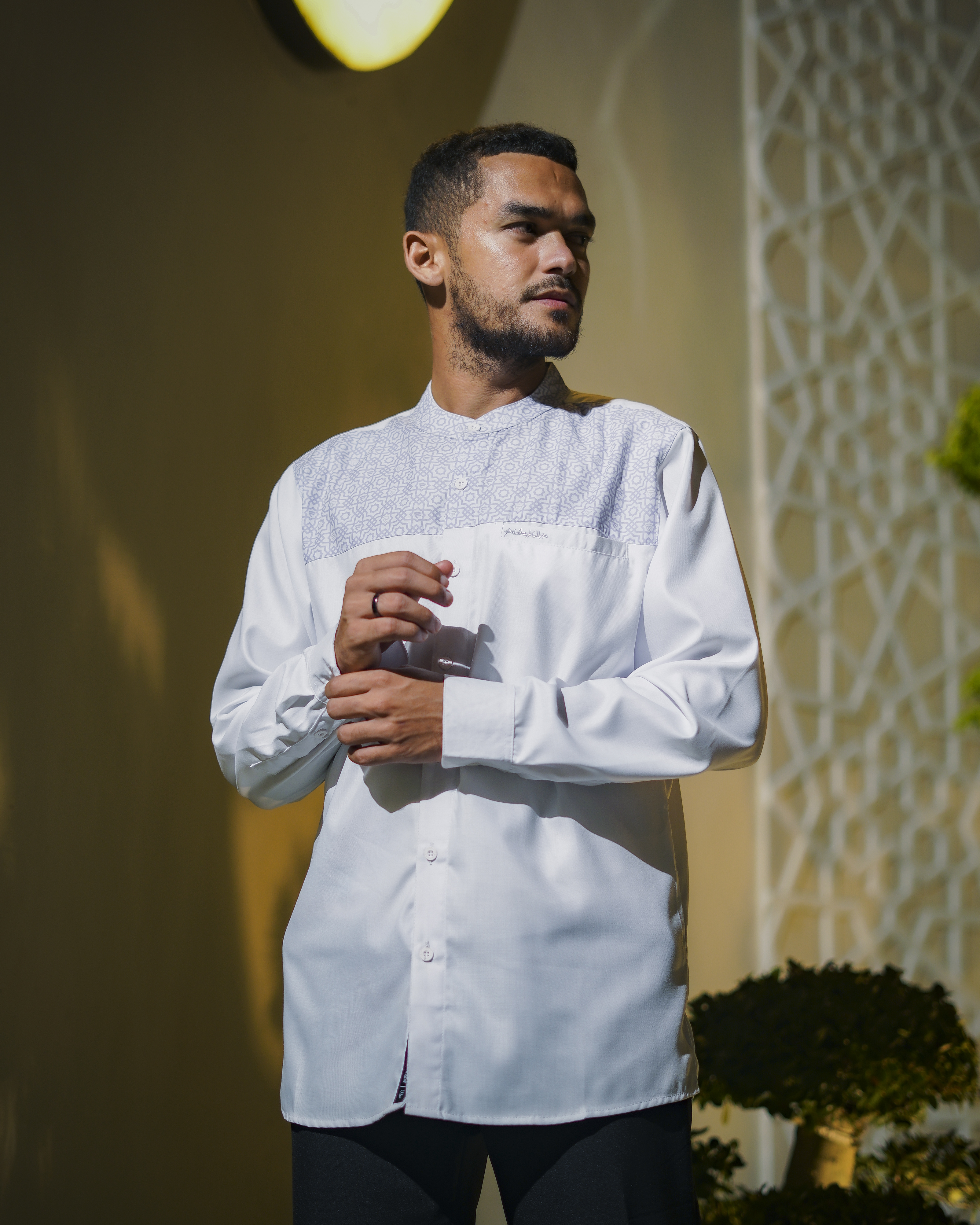 Medina dibuat untuk lo yang geraknya cepat, tapi tetap menghargai akar. Detail pattern Islami disulam halus di bagian dada, membalut siluet ramping dengan potongan yang clean dan fit. Dari teras masjid ke jalanan kota, Medina blend-in tanpa kehilangan makna. Gaya yang tenang, tapi punya suara. Tradisi tetap hidup, tapi gayanya tetap lo banget.