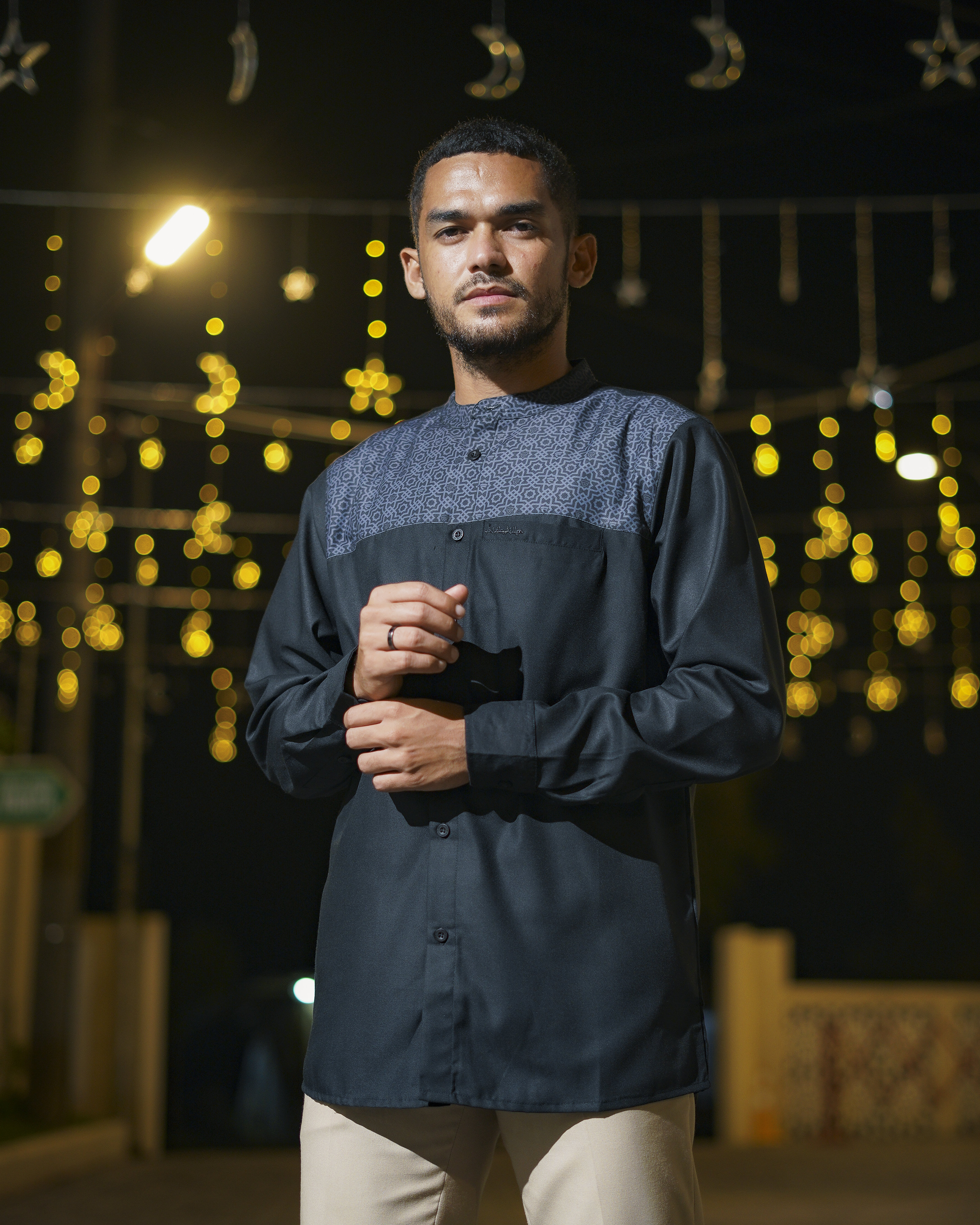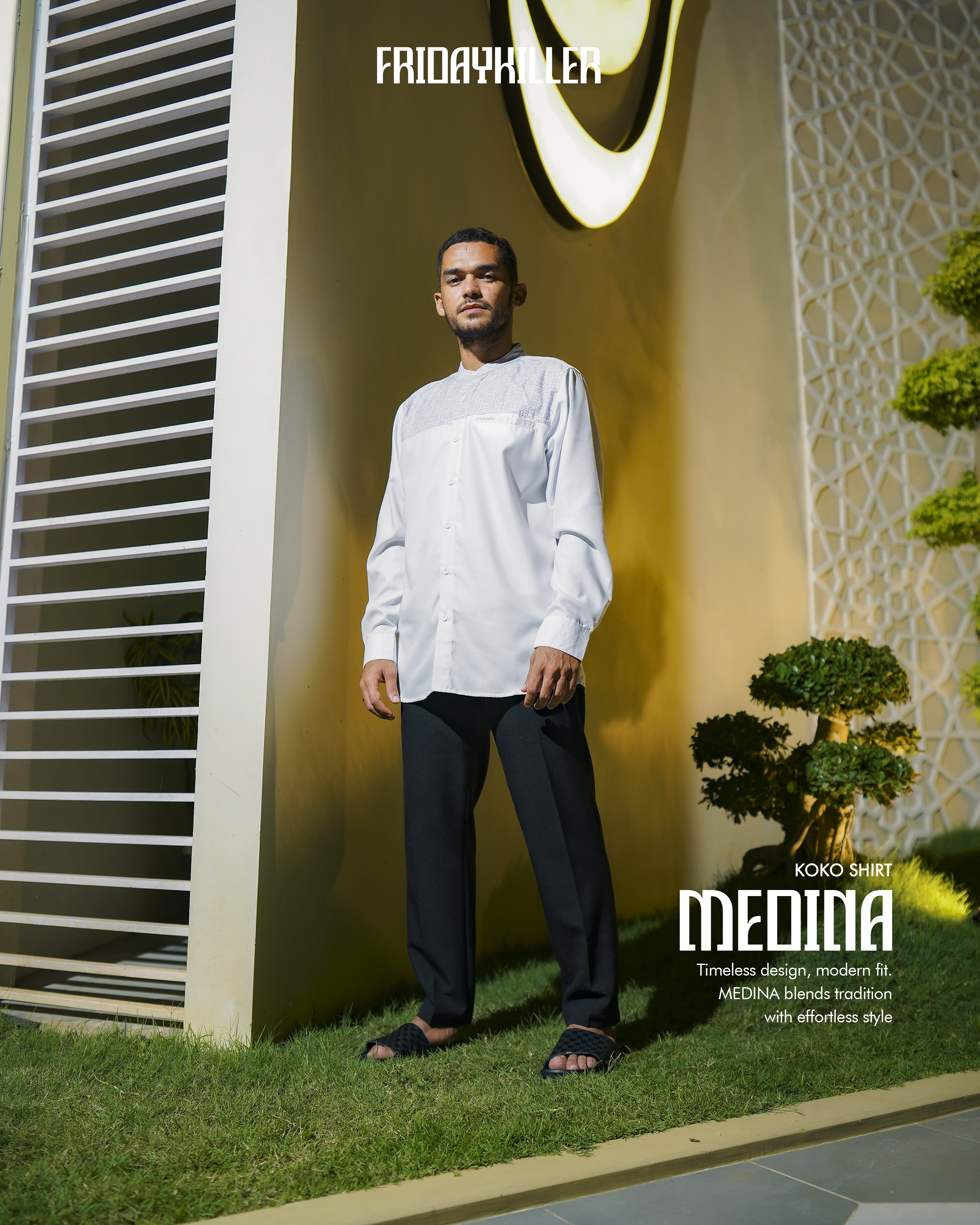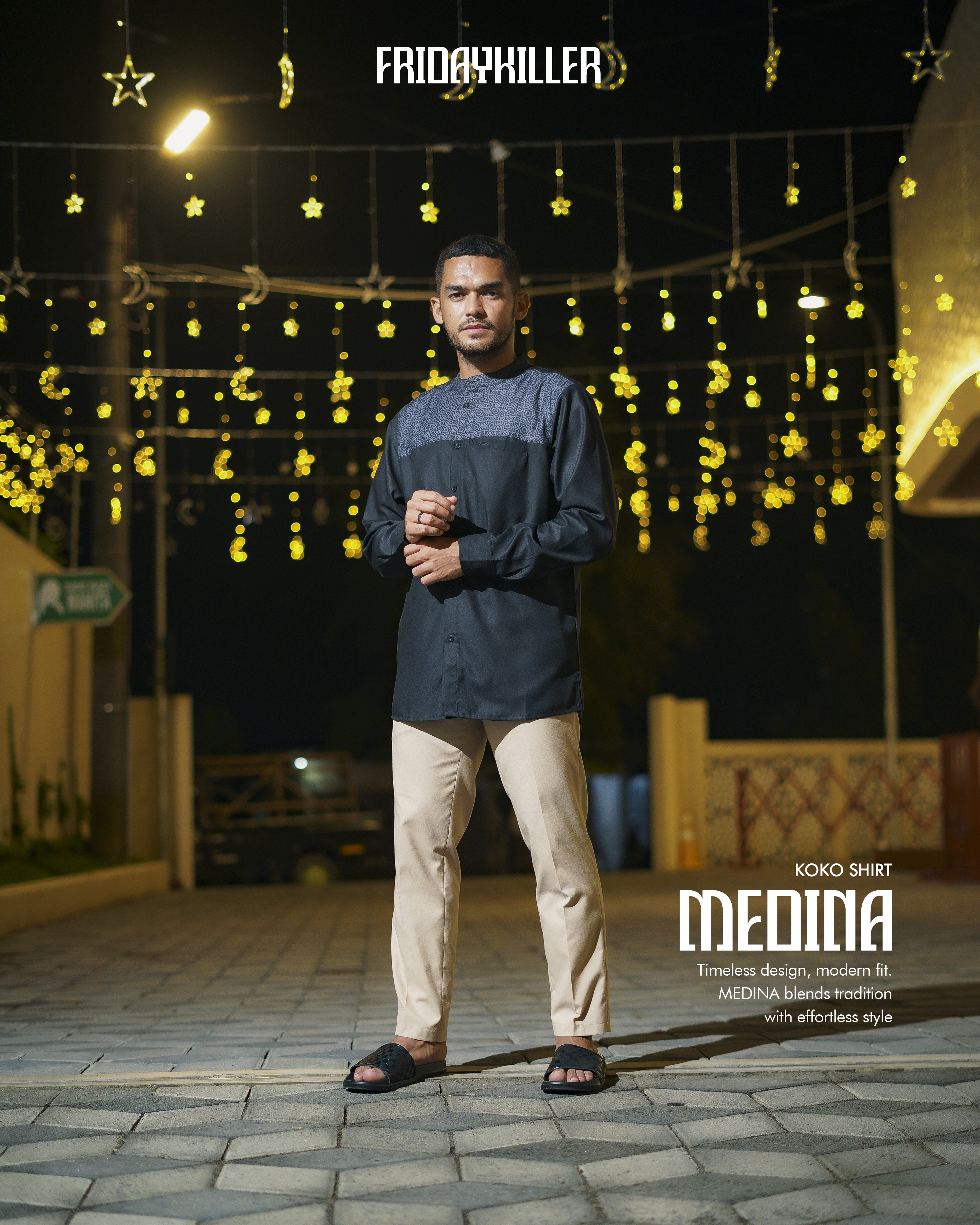 Medina dibuat untuk lo yang geraknya cepat, tapi tetap menghargai akar. Detail pattern Islami disulam halus di bagian dada, membalut siluet ramping dengan potongan yang clean dan fit. Dari teras masjid ke jalanan kota, Medina blend-in tanpa kehilangan makna. Gaya yang tenang, tapi punya suara. Tradisi tetap hidup, tapi gayanya tetap lo banget.