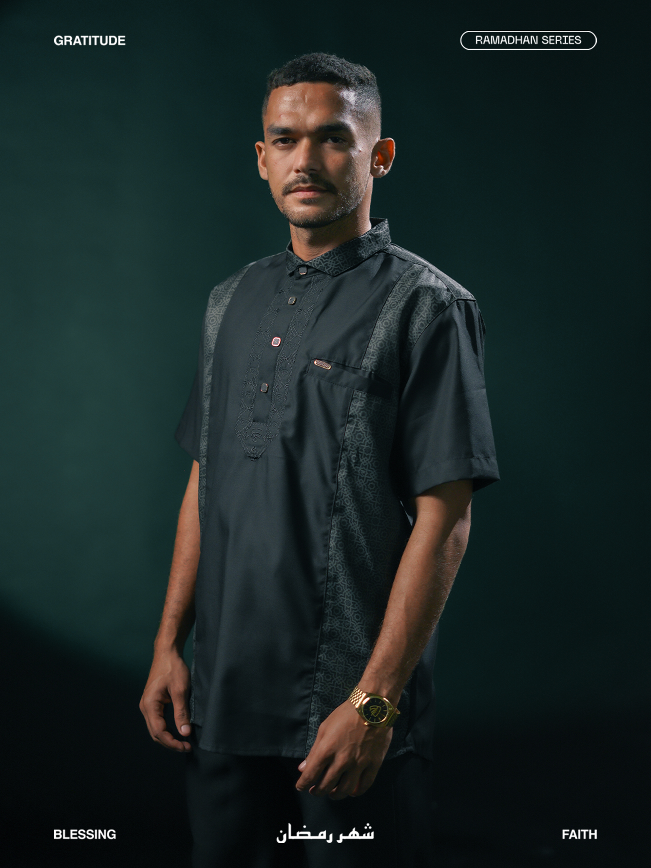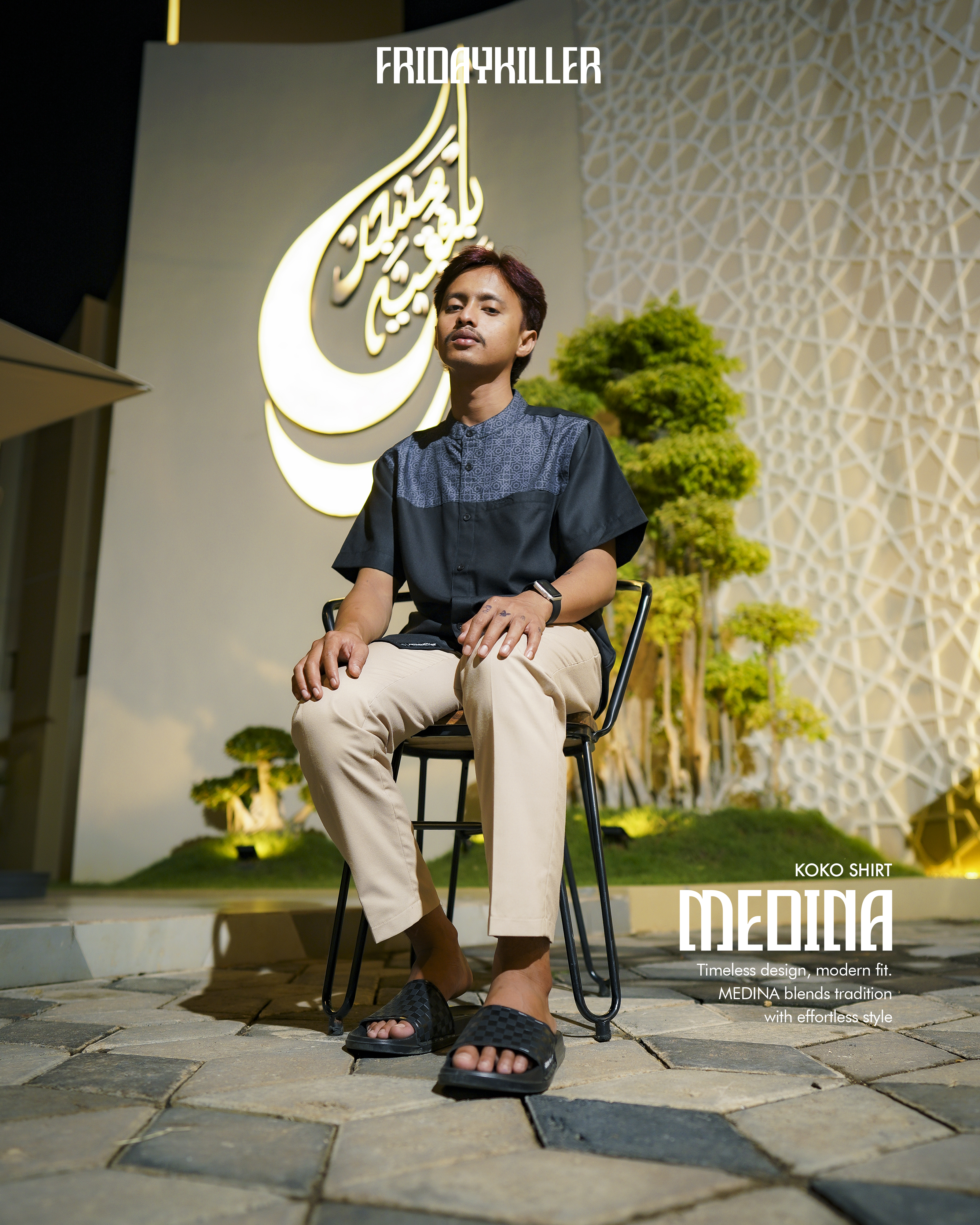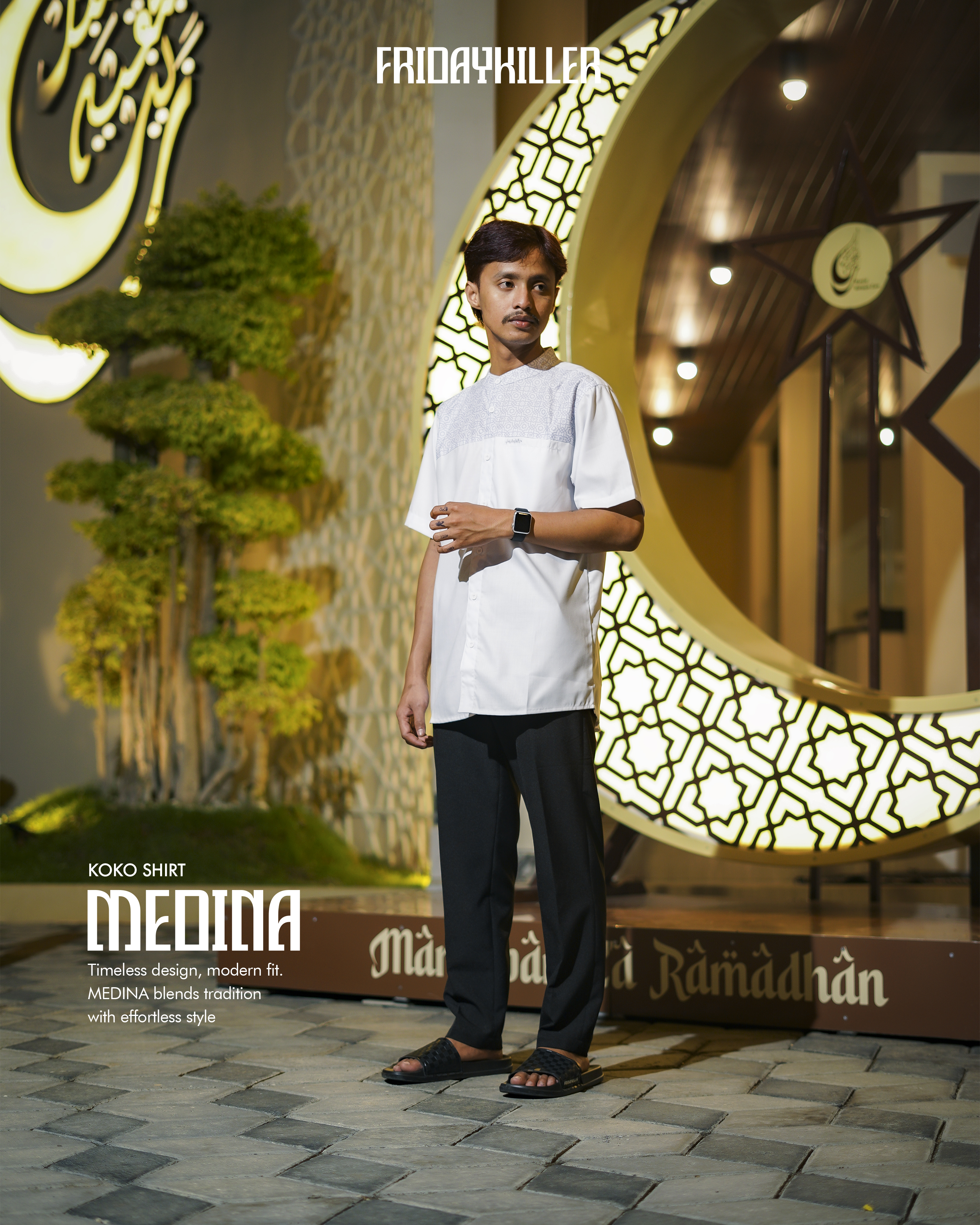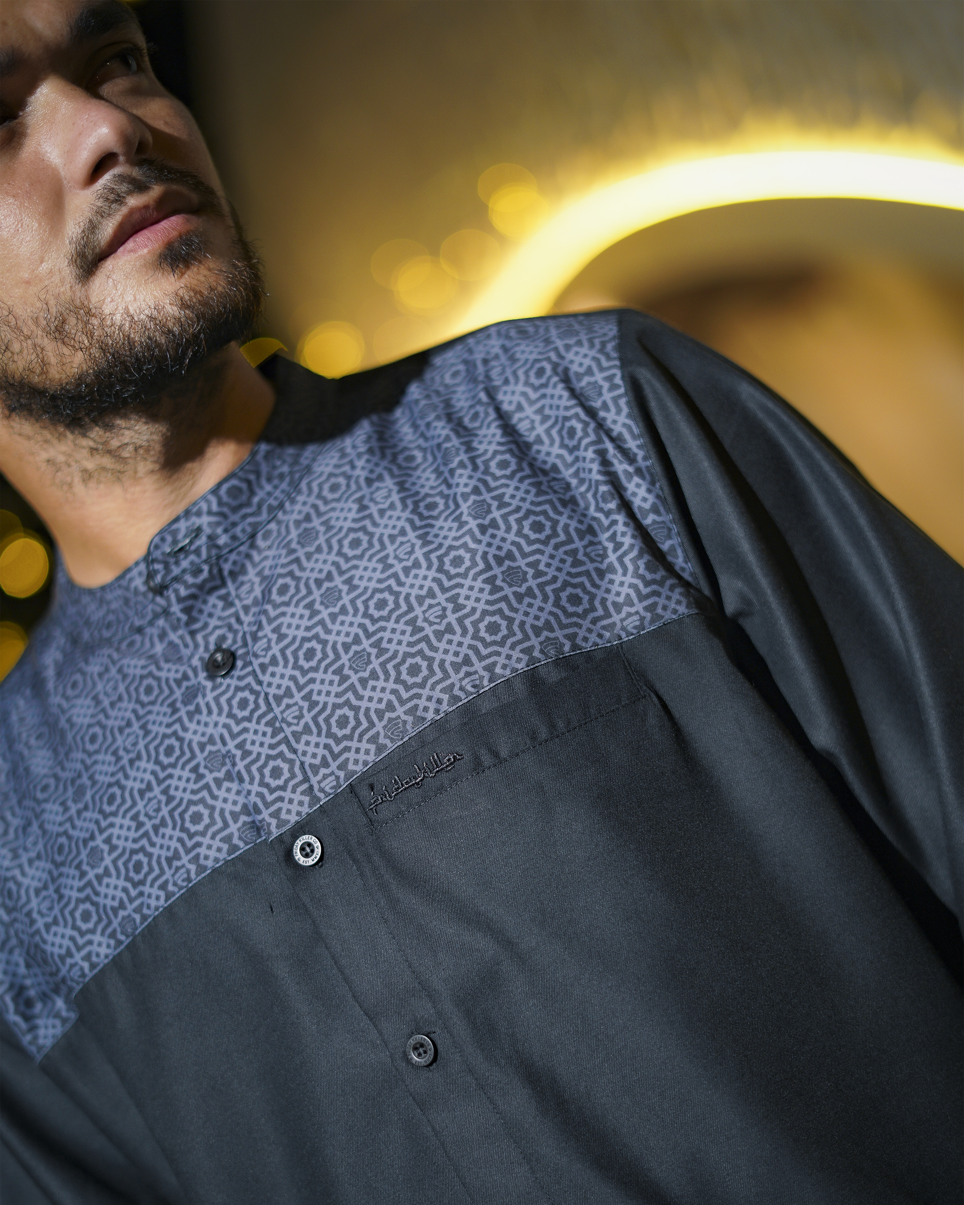 Medina dibuat untuk lo yang geraknya cepat, tapi tetap menghargai akar. Detail pattern Islami disulam halus di bagian dada, membalut siluet ramping dengan potongan yang clean dan fit. Dari teras masjid ke jalanan kota, Medina blend-in tanpa kehilangan makna. Gaya yang tenang, tapi punya suara. Tradisi tetap hidup, tapi gayanya tetap lo banget.
